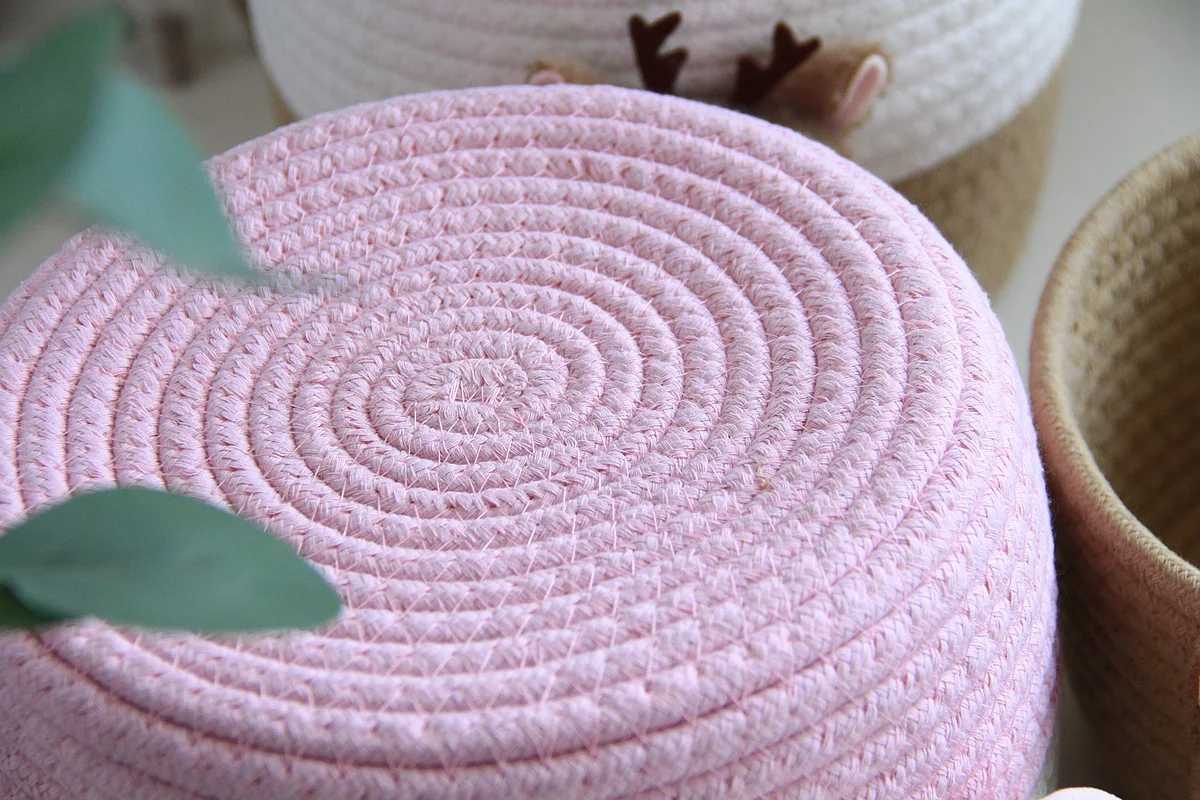 Woven Cotton Rope Storage Bin – Fun Cartoon Design for Kids’ Room, Toys, and Daily Essentials